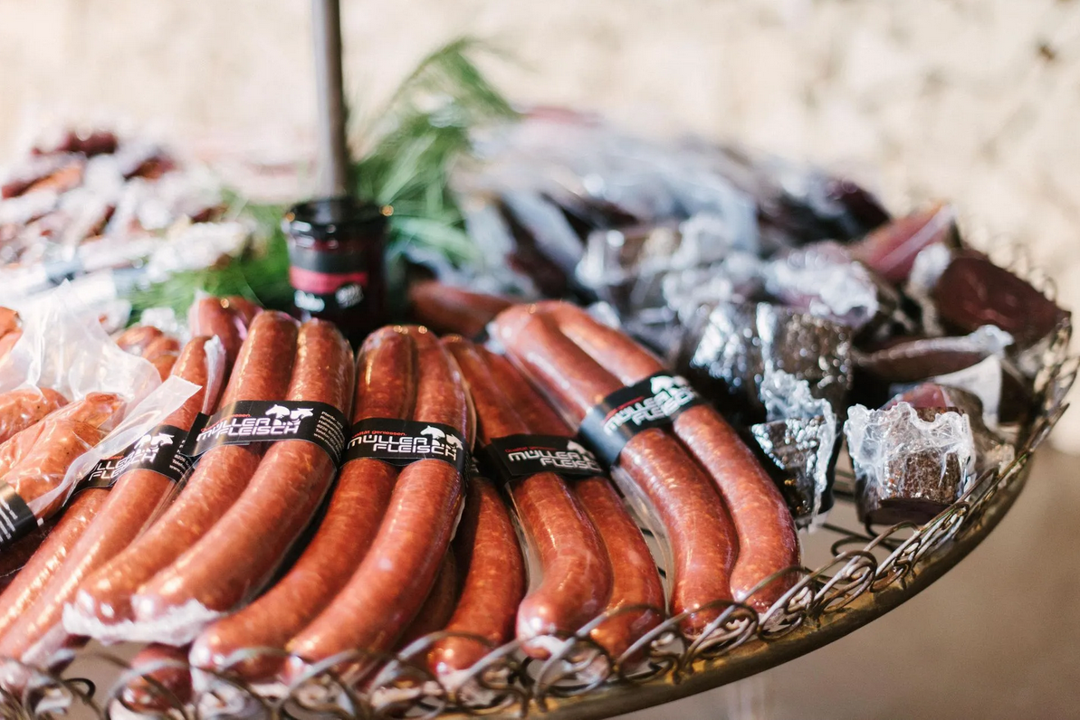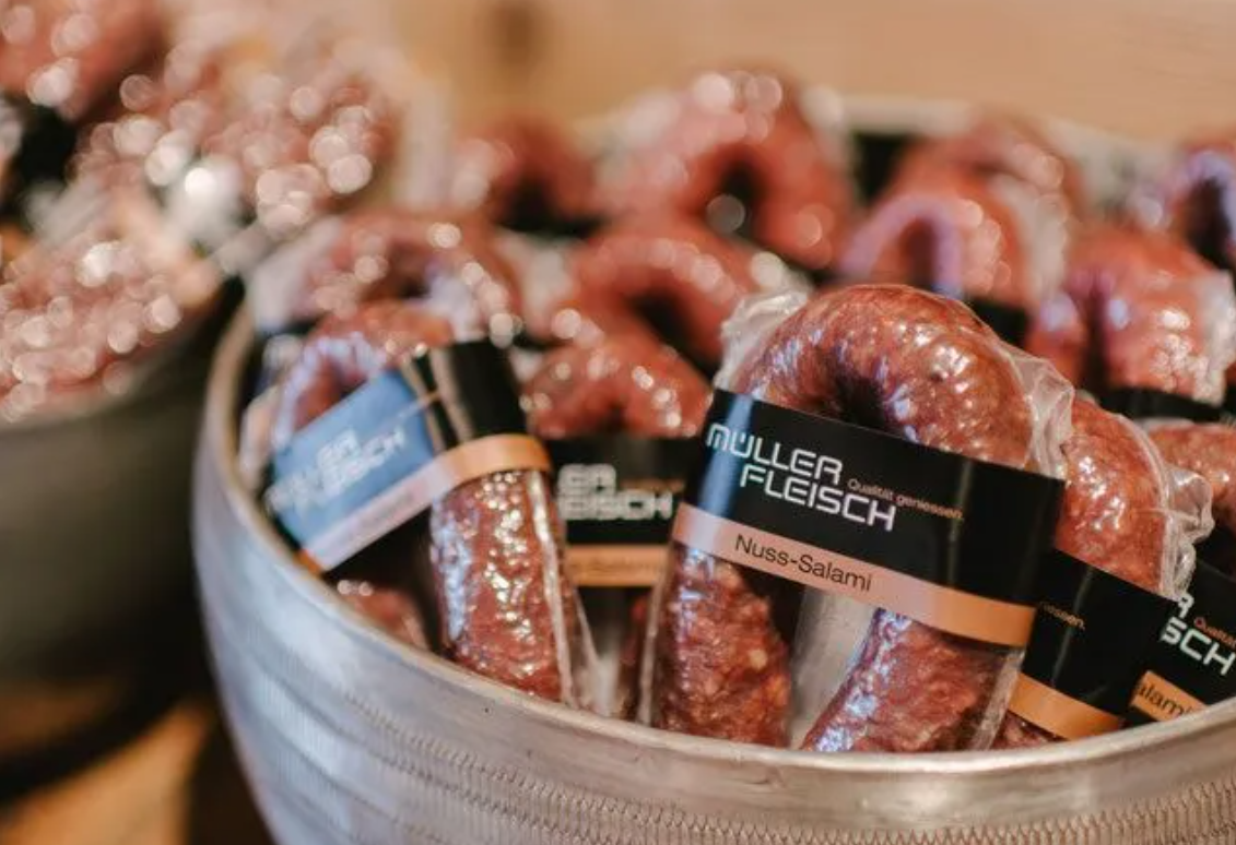 Die Müller Fleisch GmbH wurde im April 2006 durch Edwin Müller und Robert Müller gegründet und wächst seither jährlich. Ursprünglich spezialisiert auf Pferde-Metzgerei, haben wir unser Angebot auf Schweine-, Rinder-, Kalb-, Poulet- und Lammfleisch erweitert. So bieten wir unseren Kunden ein breites Spektrum an frischen Produkten aus lokaler Herkunft und Produktion. „Wir konzentrieren uns auf qualitativ hochwertiges Frischfleisch und verarbeitete Fleisch-Spezialitäten aus eigener Herstellung. Unsere Tiere beziehen wir aus der Region!